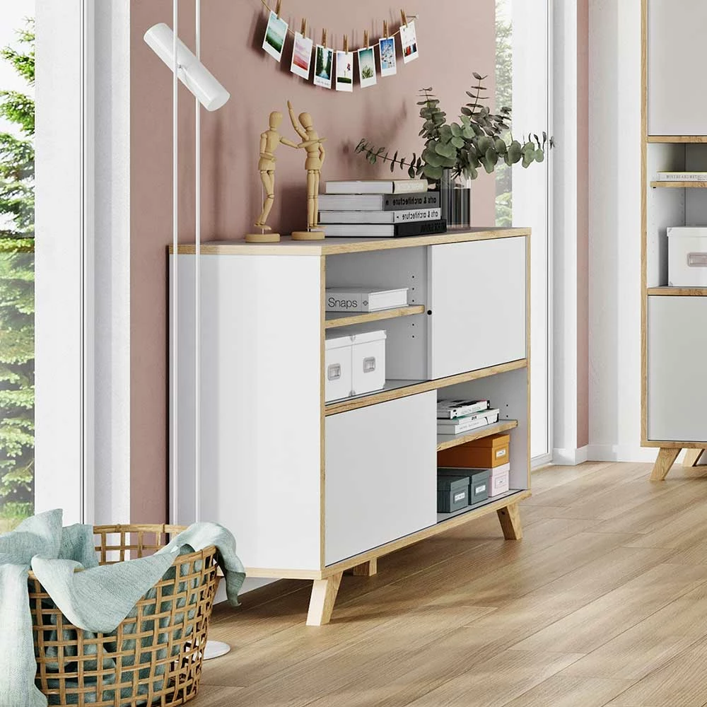 Großhandel 🤩 120x92x40 Skandi Schrank Mit 2 Schiebetüren – Pronada ⭐