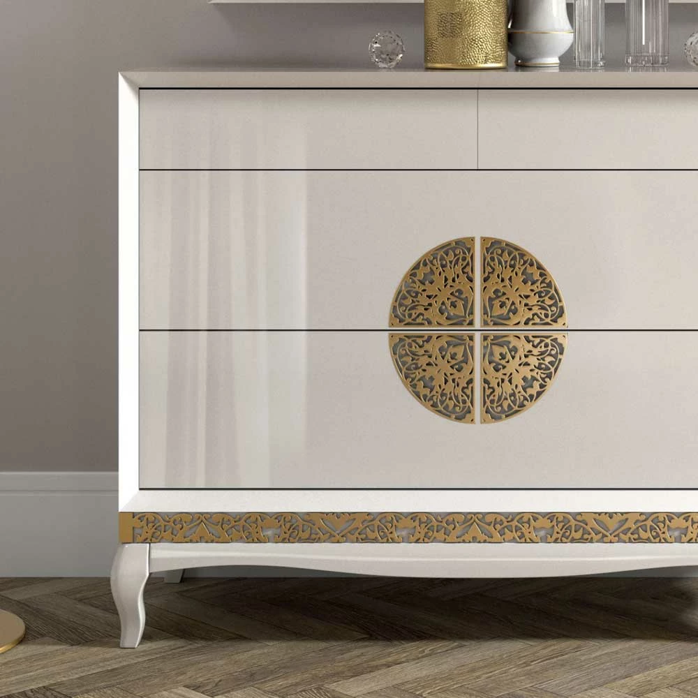 - Luxuriöses Sideboard in Weiß und Goldfarben
