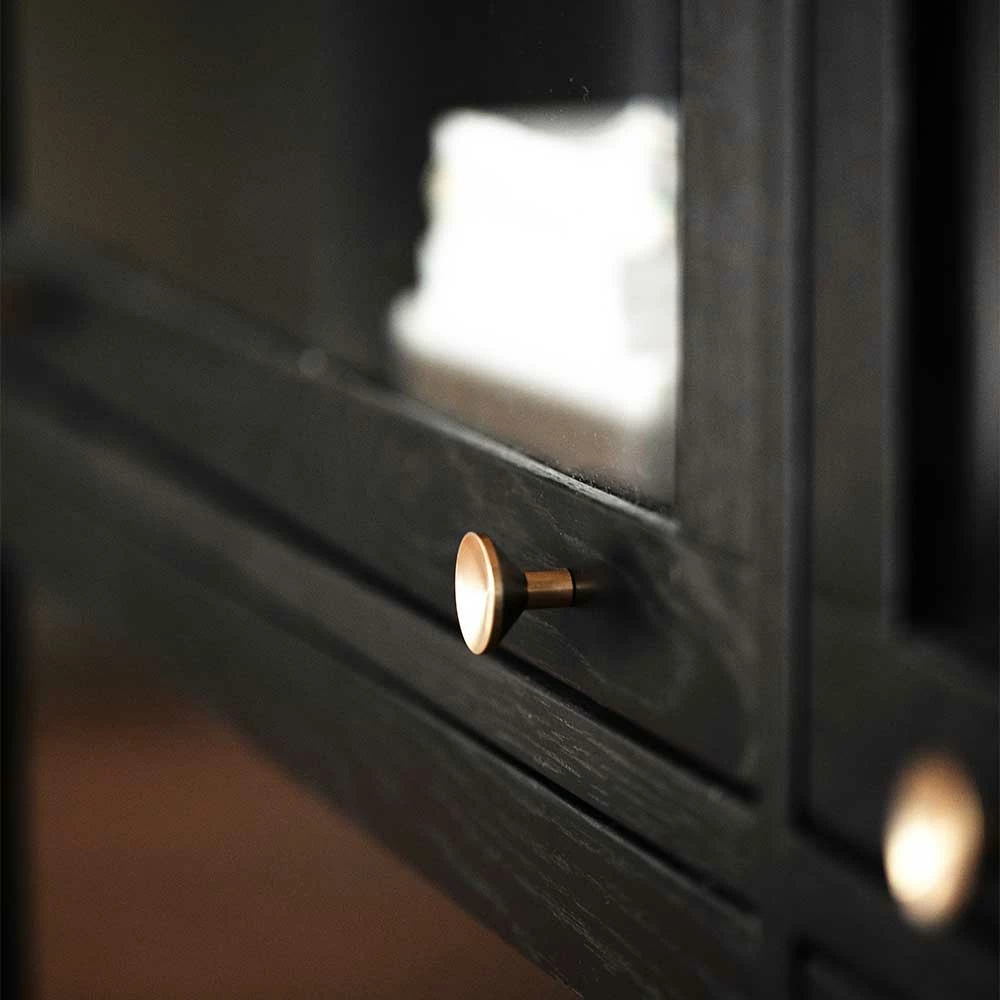 - Handliche Knopfgriffe aus Metall in Messingfarben