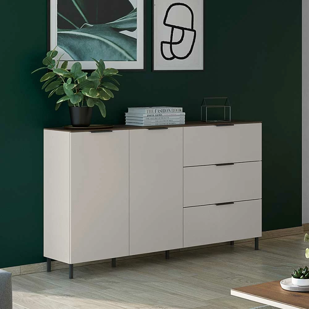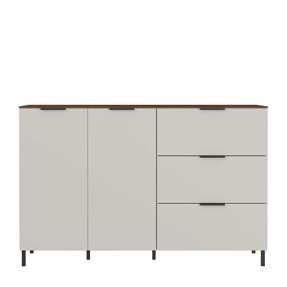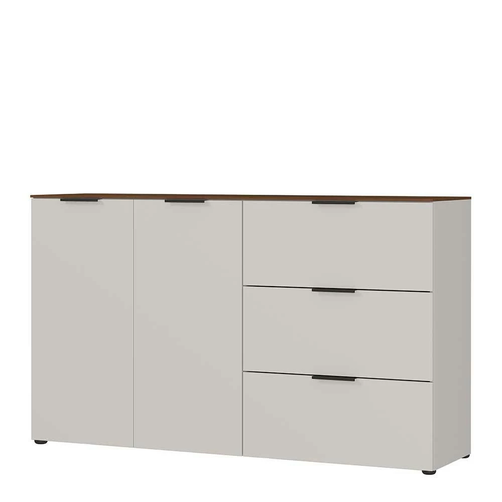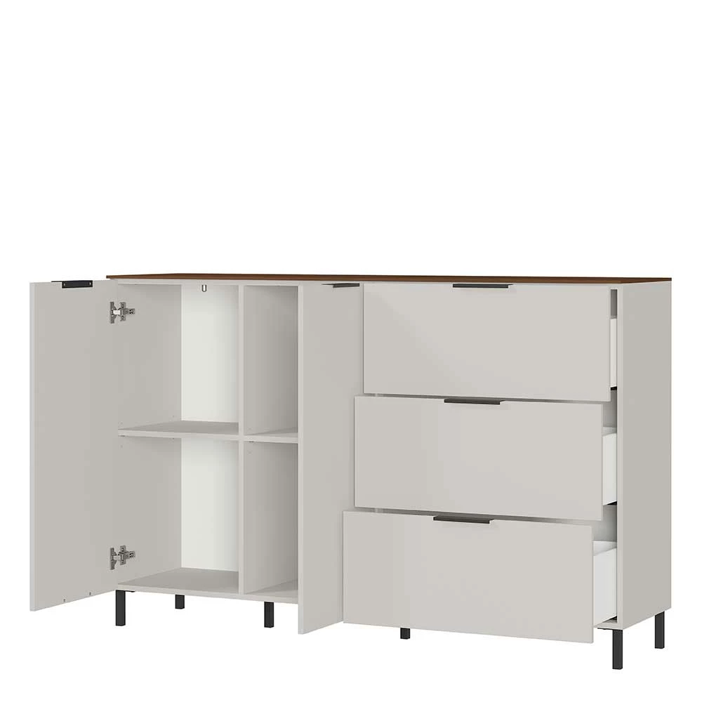 - Geräumige Anrichte in Hellgrau und Nussbaumfarben