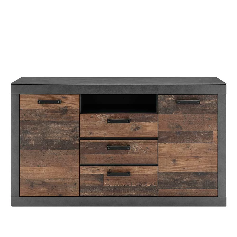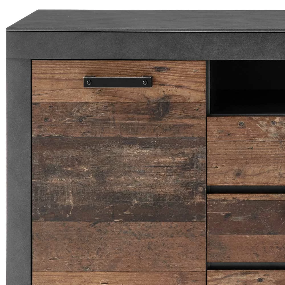 - Exzellentes Sideboard in Dunkelgrau und Altholz Optik