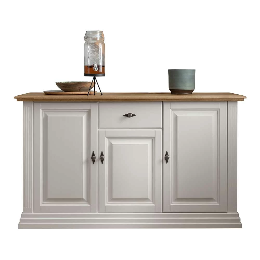 - Geräumiges Sideboard in Weiß und Eichefarben