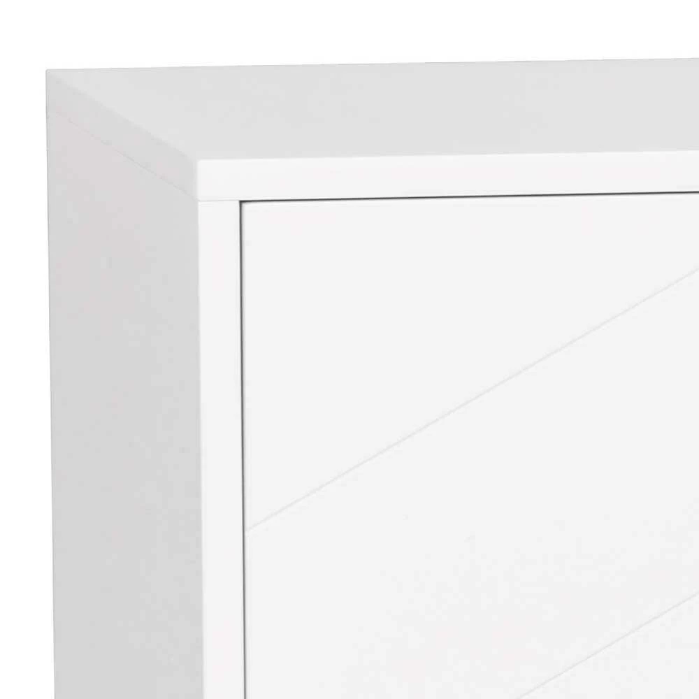 - MDF-Oberfläche in Weiß lackiert und an den Fronten im Zickzack-Muster eingefräst