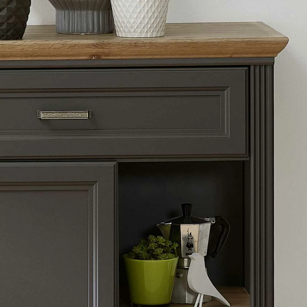 - Stilvolles Sideboard in dunkel Grau und Eichefarben