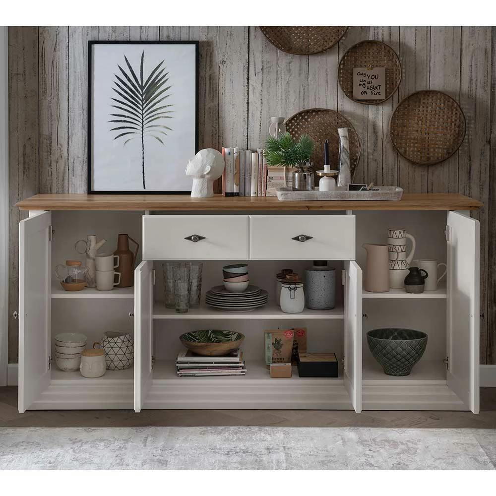 Besorgen 😀 202x91x45 Country Anrichte In Weiß & Eiche – Henry 🤩