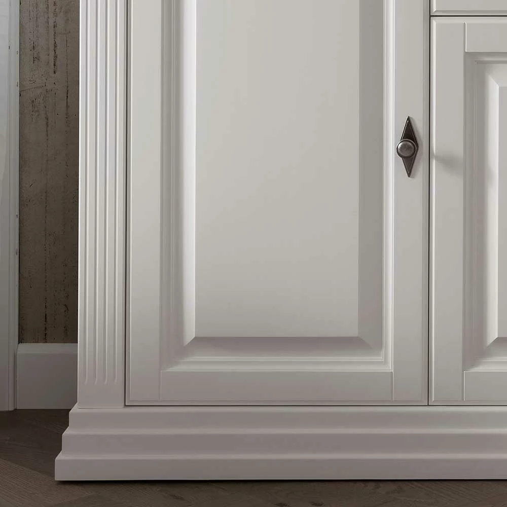 - Vier Türen mit gedämpften Metallbeschlägen, Front in Kassettenoptik gestaltet