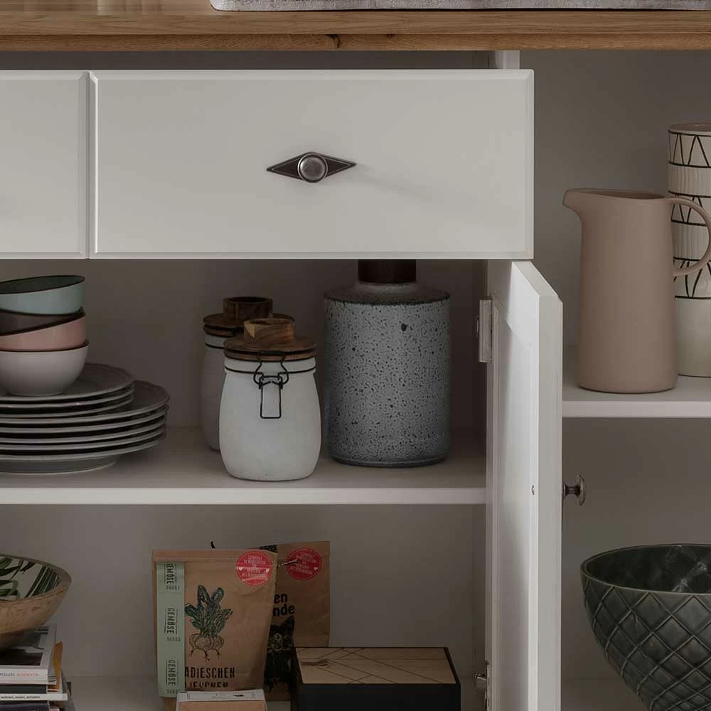 - Ansprechendes Sideboard in Weiß und Eichefarben