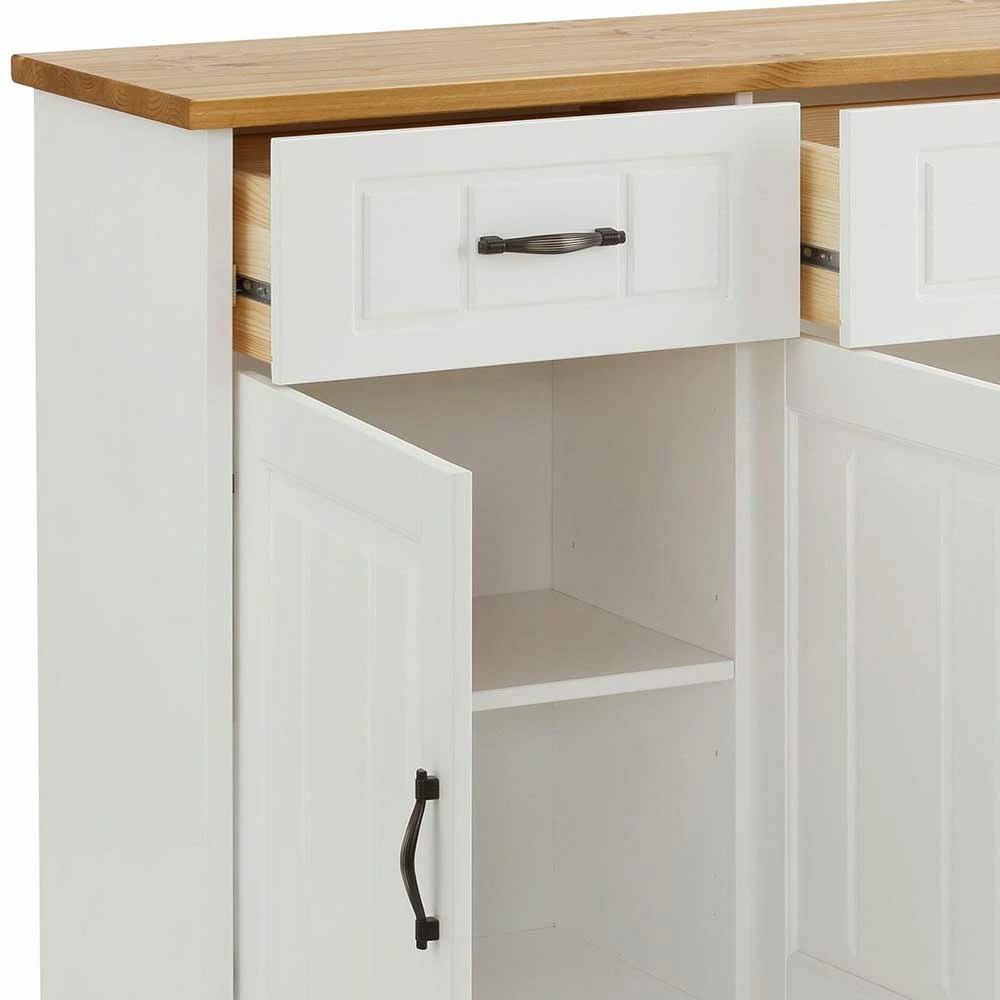- Schmuckes Landhaus Sideboard in Kiefer Weiß und Honigfarben