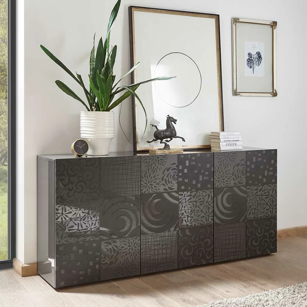 Großhandel 🧨 3-türiges Sideboard In Grau Glanz Lackiert – Ipatal 😀