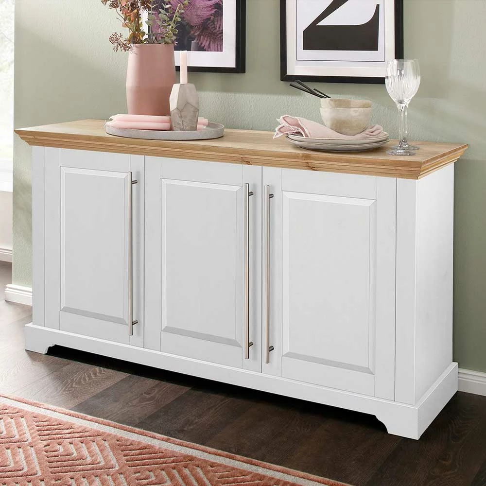 - Attraktives Sideboard in Weiß und Kiefer Honigfarben