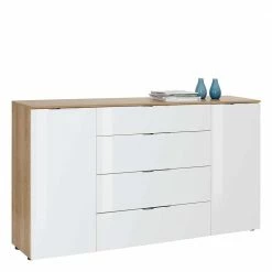 Aktion ⭐ Esszimmer Sideboard In Weiß Glas & Eiche – Ayfuna 🧨