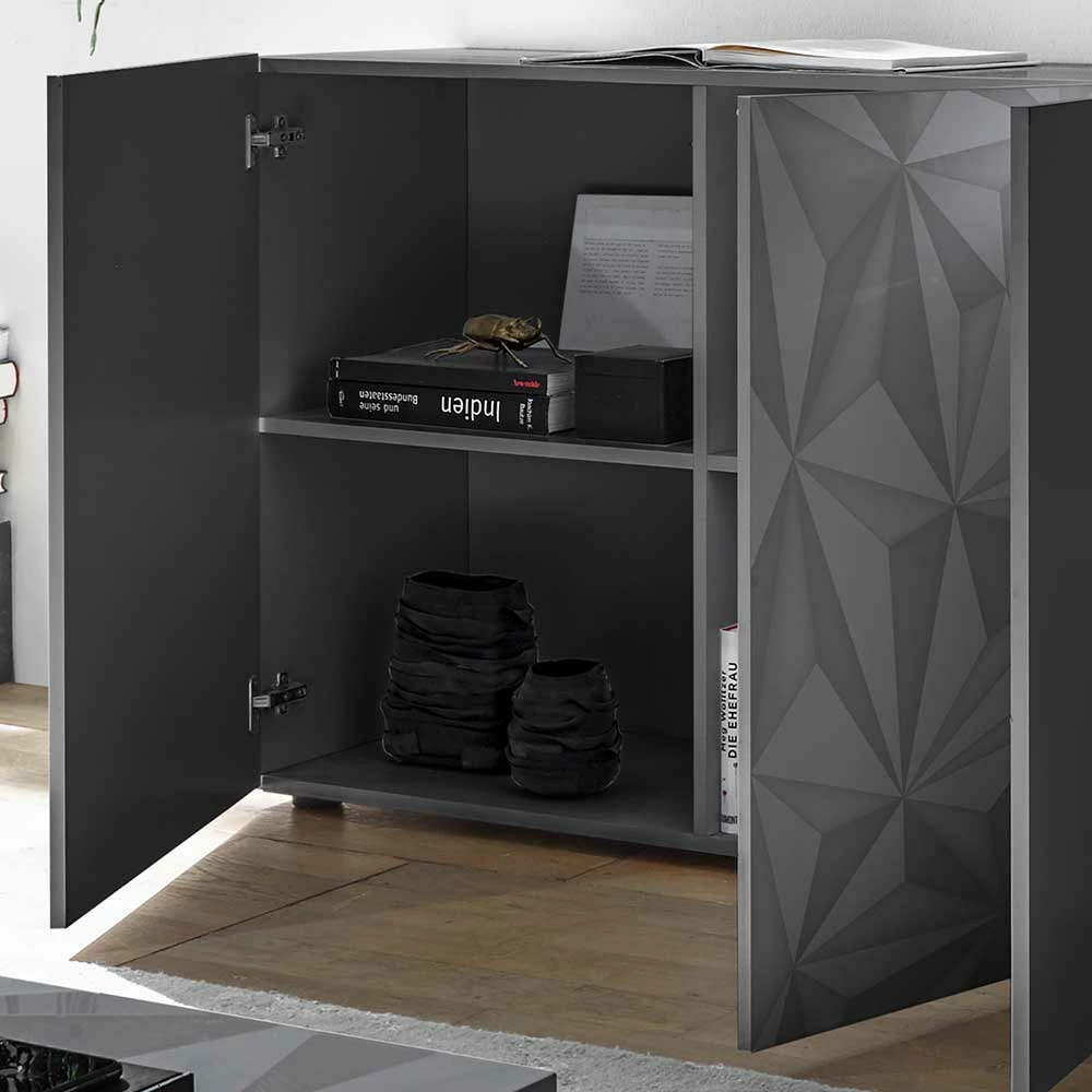 - Oberflächen lackiert in Anthrazit Hochglanz, Front mit aufwändigem Siebdruck gestaltet