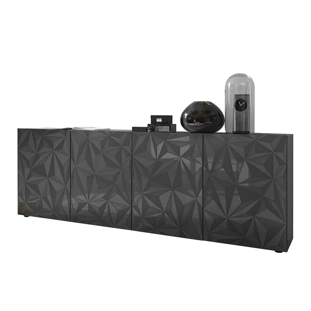 Billig 🥰 Graues Hochglanz-Sideboard 4-türiig – Kuriasna ❤️
