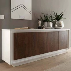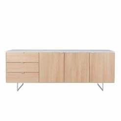 Am billigsten 🎁 Mid Century Sideboard In Weiß & Eiche Vudian Ohne Griffe 🌟