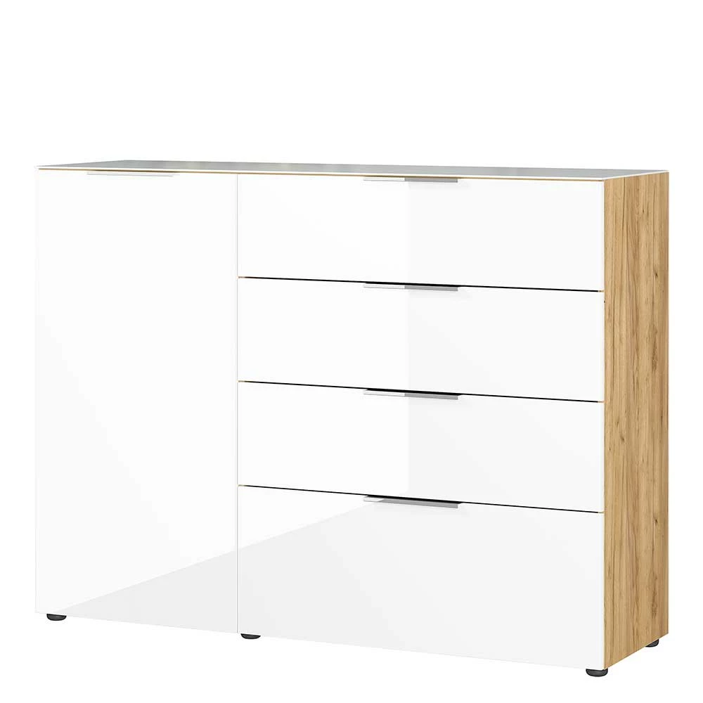 - Geräumige Kommode in Weiß und Wildeichefarben