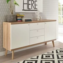 - Stilvolles Sideboard in Weiß und Eichefarben