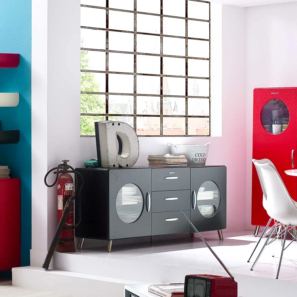 Am billigsten 🥰 Retro Sideboard Flavian In Schwarz ✔️