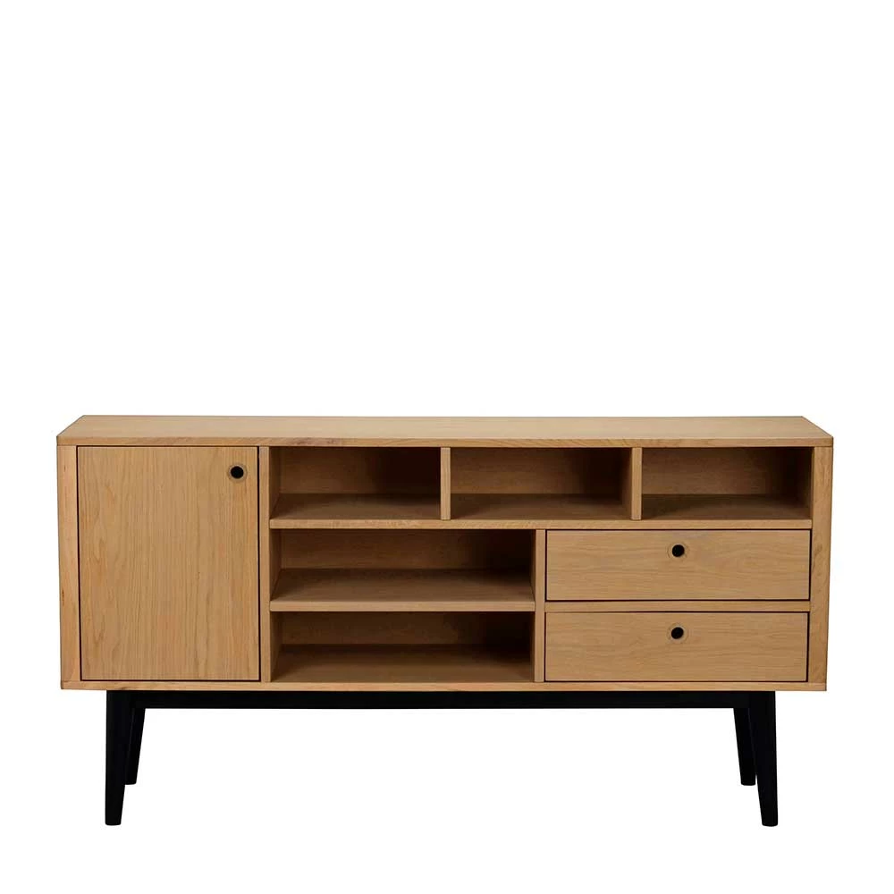 Bestes Angebot 🥰 Retro Sideboard Mit Furnier Eiche Natur Tinerva & Gestell Schwarz 🎁