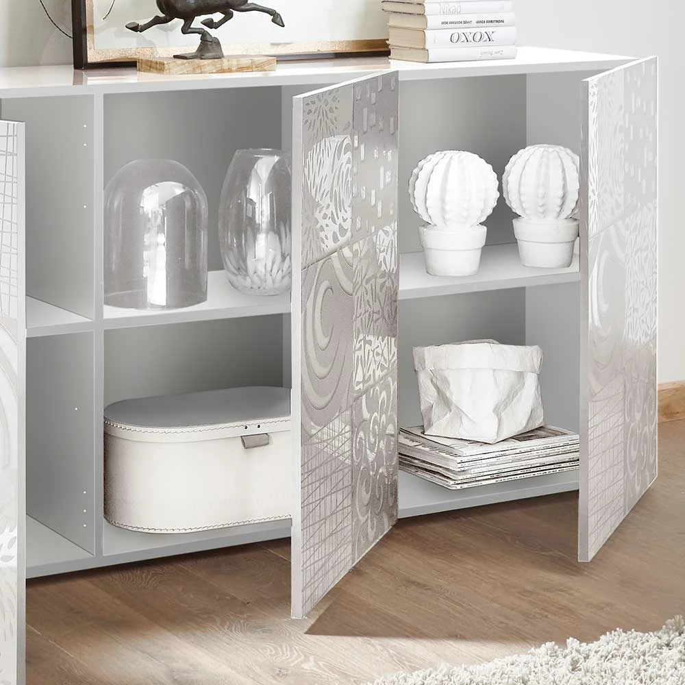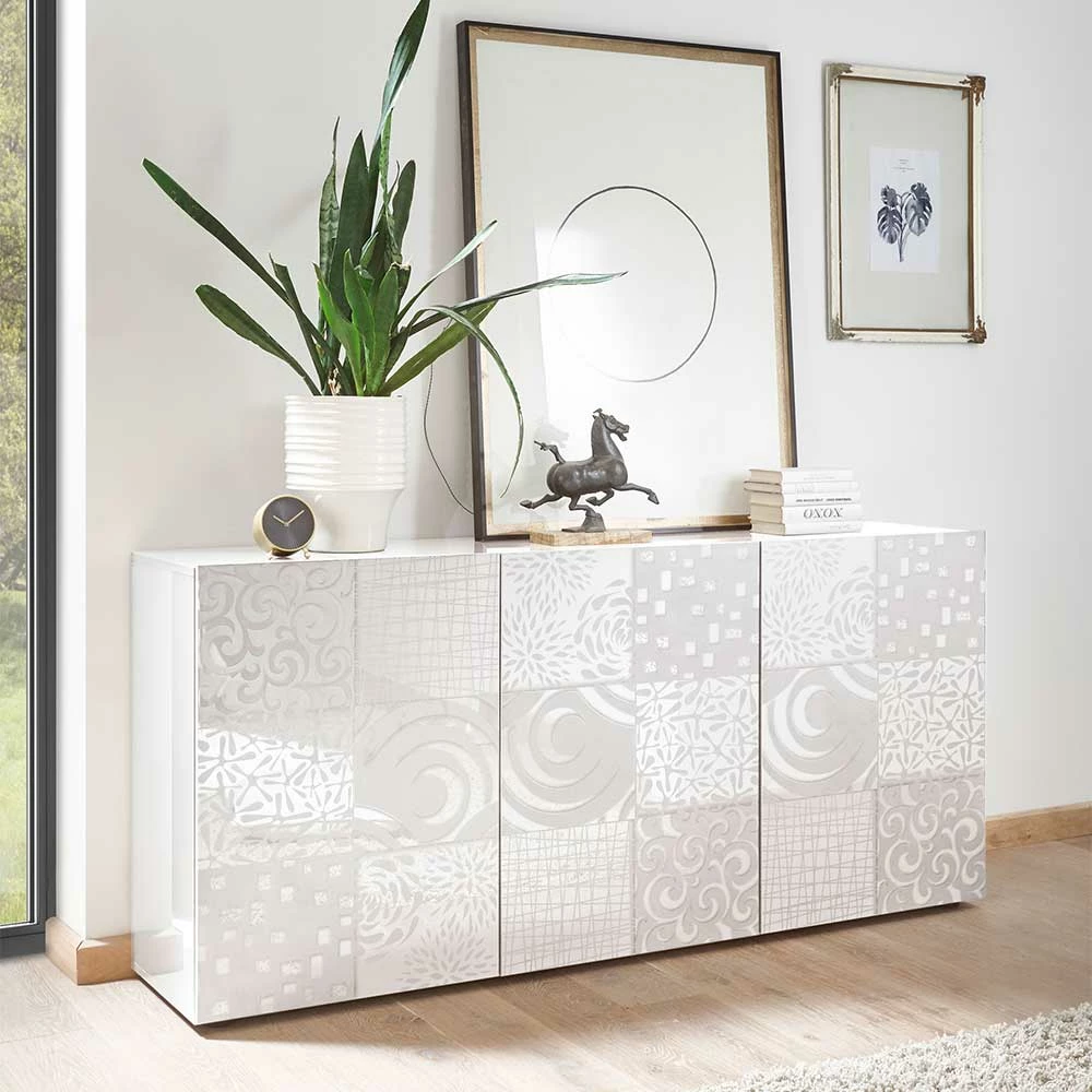 Neu 😀 Weißes Hochglanz Türen-Sideboard Bedruckt – Vascaub 🧨