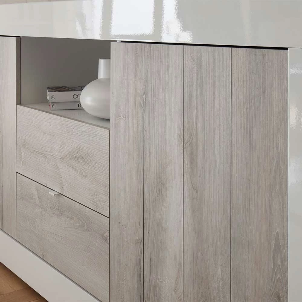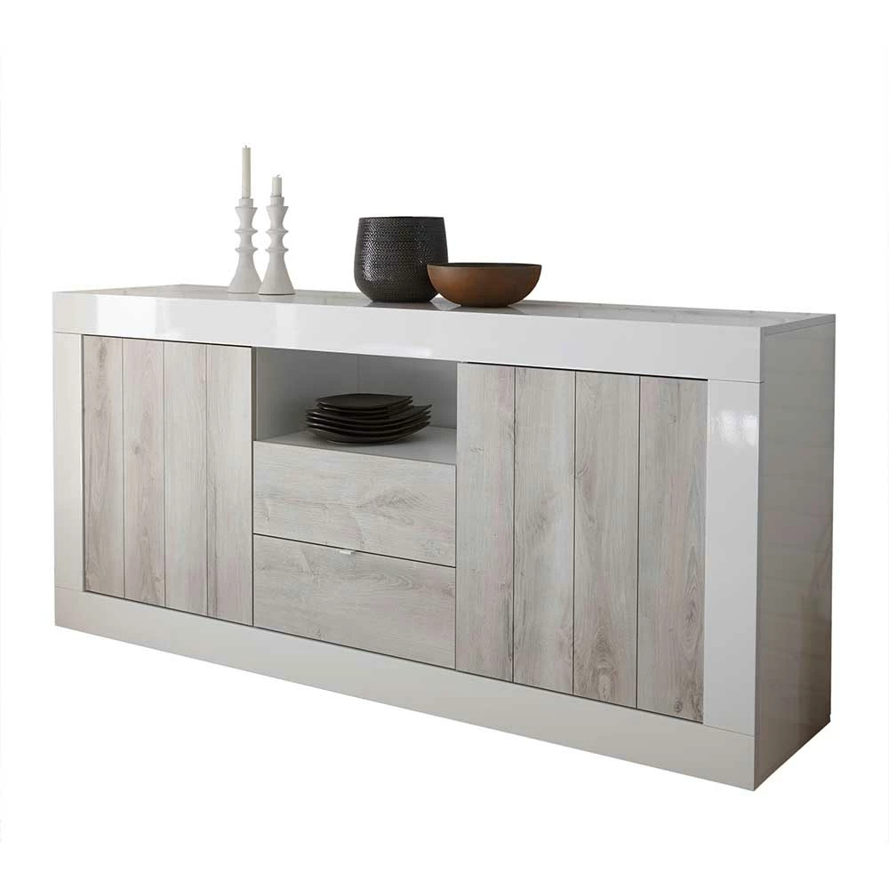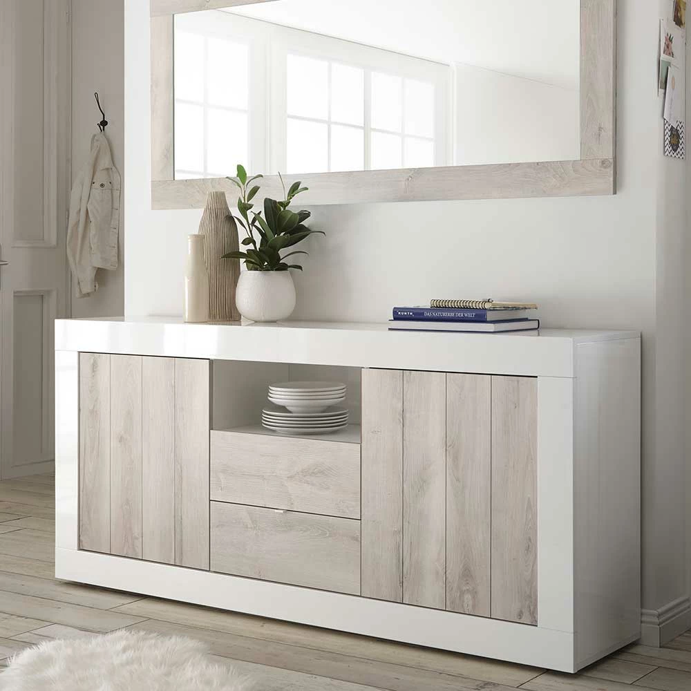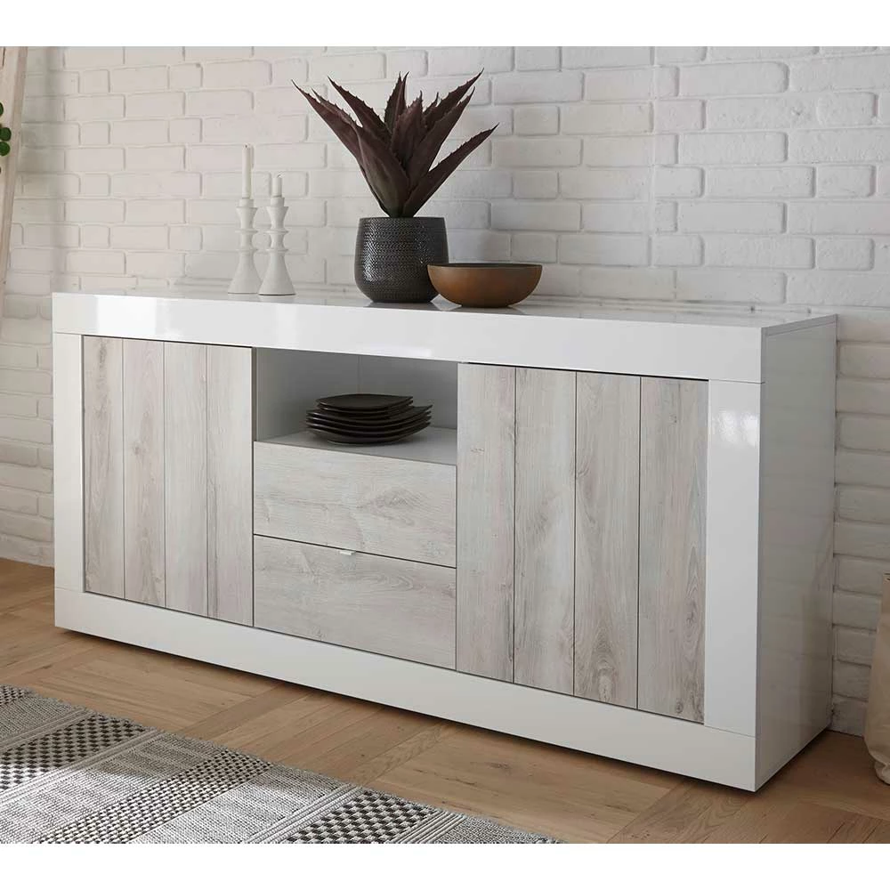 - Harmonisches Sideboard in Weiß Hochglanz und Pinie Weiß