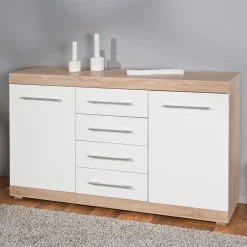- Geschmackvolles Sideboard in Weiß matt und Anthrazit