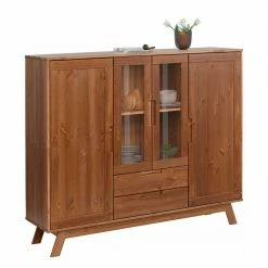 Beste Bewertungen von 🔥 Vitrine Highboard Aus Kiefer In Walnussfarben – Omezko 🥰