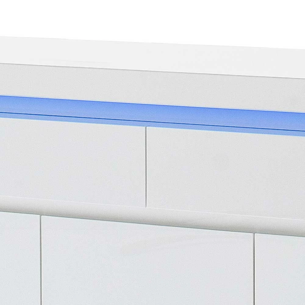 - Durch die effektvolle Farbwechselbeleuchtung wird dieses Sideboard zum echten Hingucker